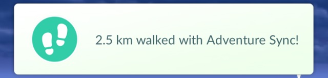 Pokud používáte Adventure Sync a spustíte Pokémon GO, tak se vám obejeví notifikace, kolik bylo připočteno nachozených kilometrů.